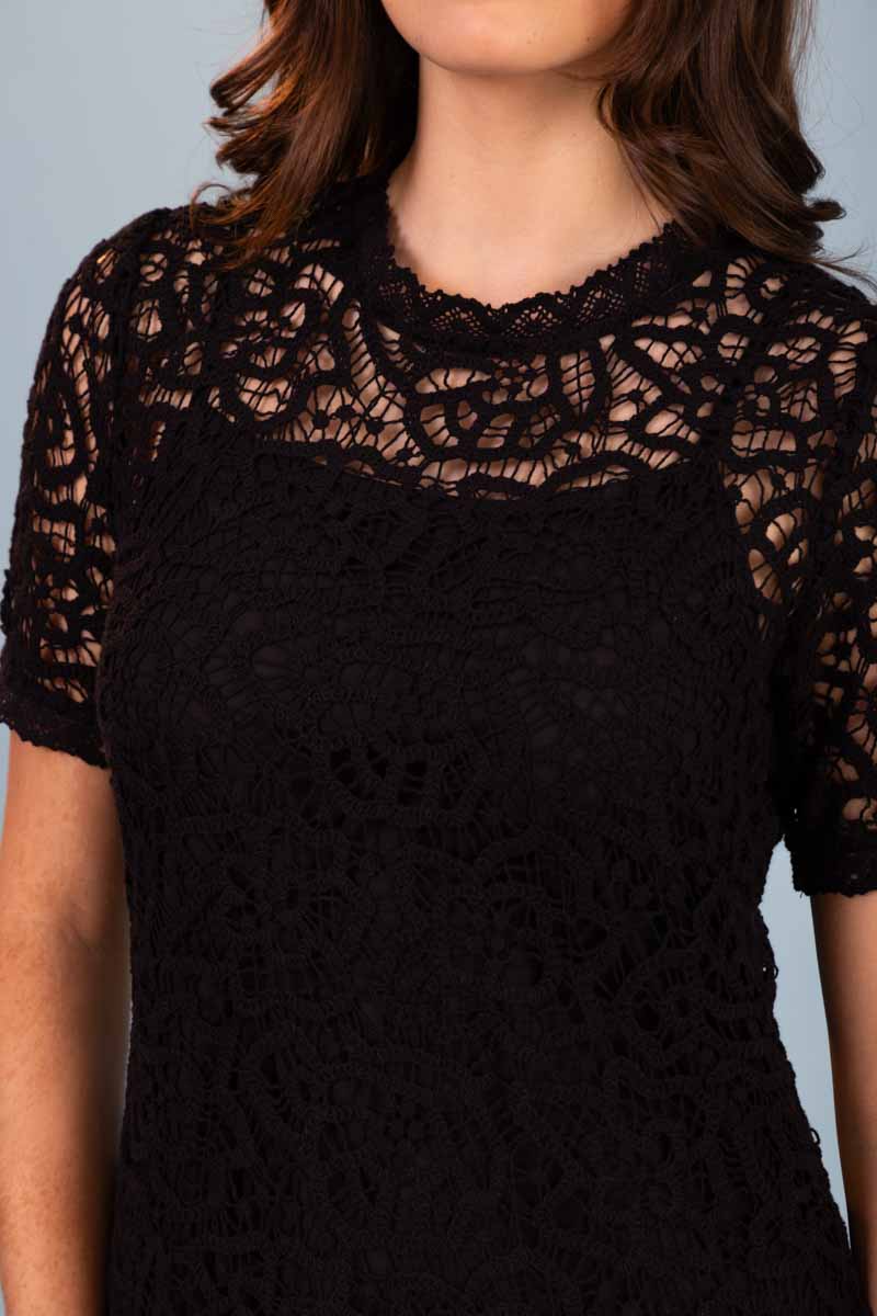 Byron Crochet Shift Dress Black