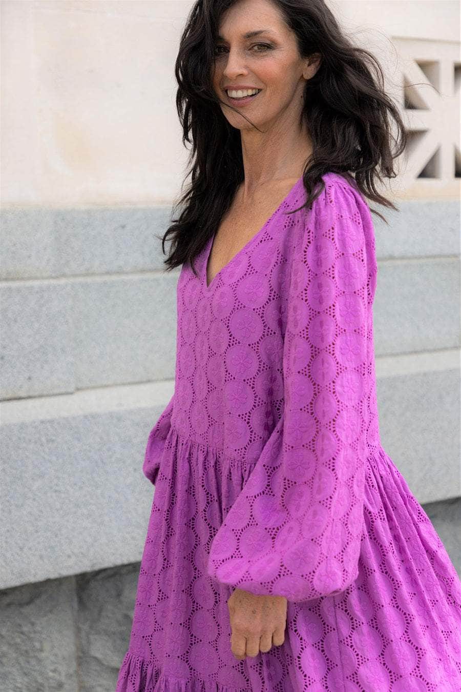 Bourganvilla Dress Embriodered Magenta Cotton