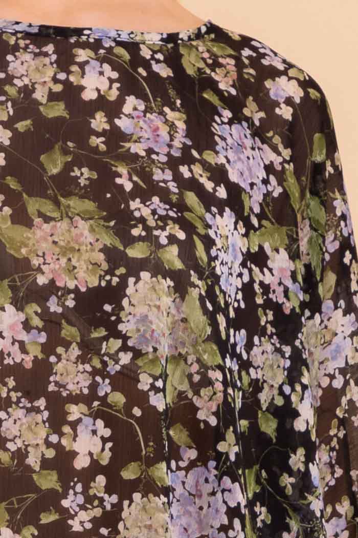 A black floral print batwing sleeve top.