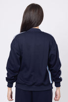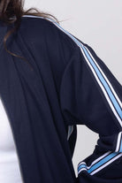 A navy bomber jacket with blue stripe detail, perfect match for the Nate Track Pant.