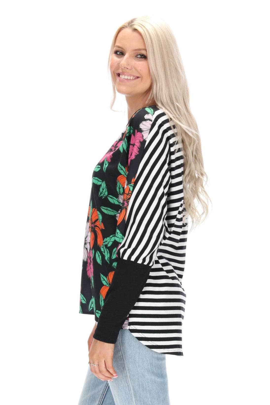 - Striped black & white jersey back body