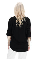 - Striped Cream/Tan/Black rib sleeve cuffs