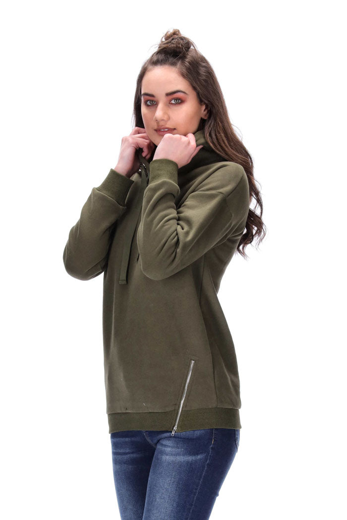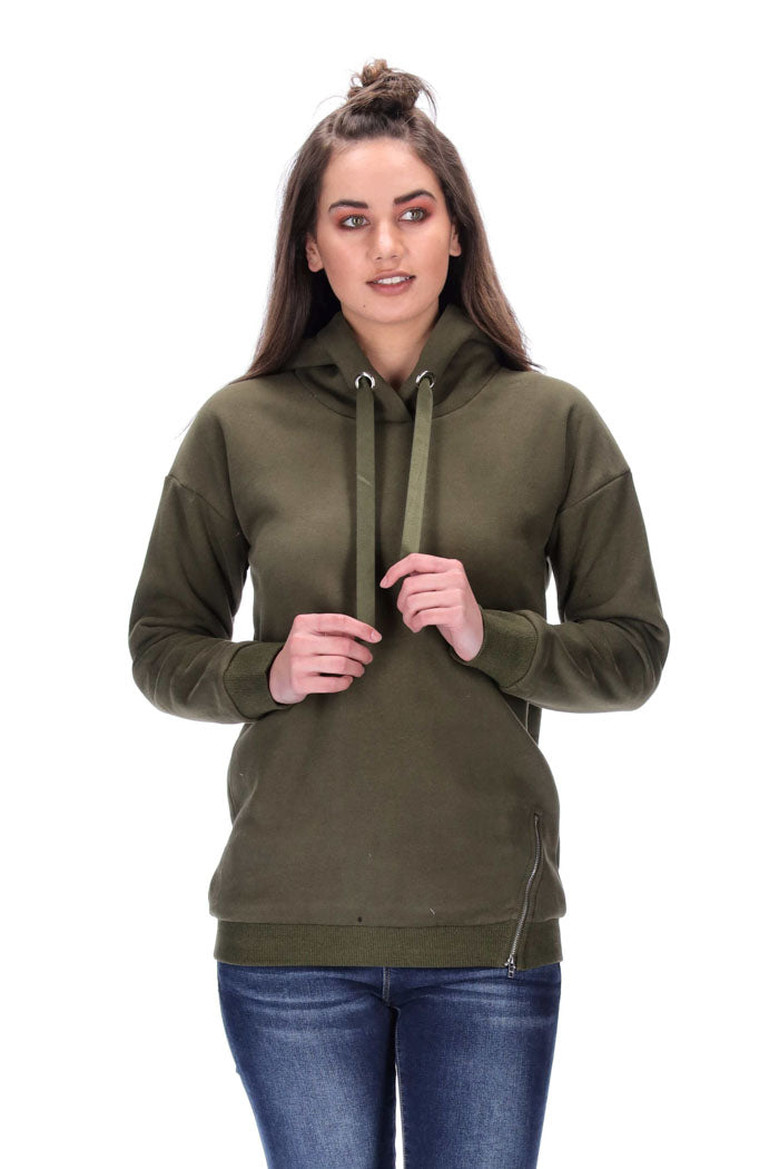Features: Casual hoodie with a grosgrain hoodie drawstring, ribbing on the sleeves and hem and side zip detail in front.