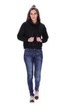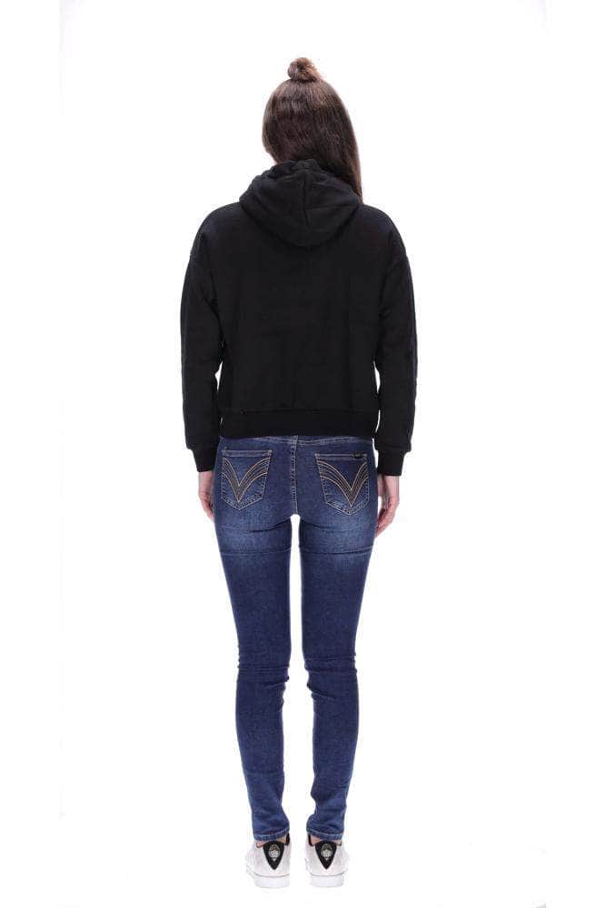 Features: Casual hoodie in medium length with silver eyelets, a grosgrain hoodie drawstring, ribbing on sleeves & hem.