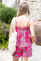 A hot pink paisley print singlet top.