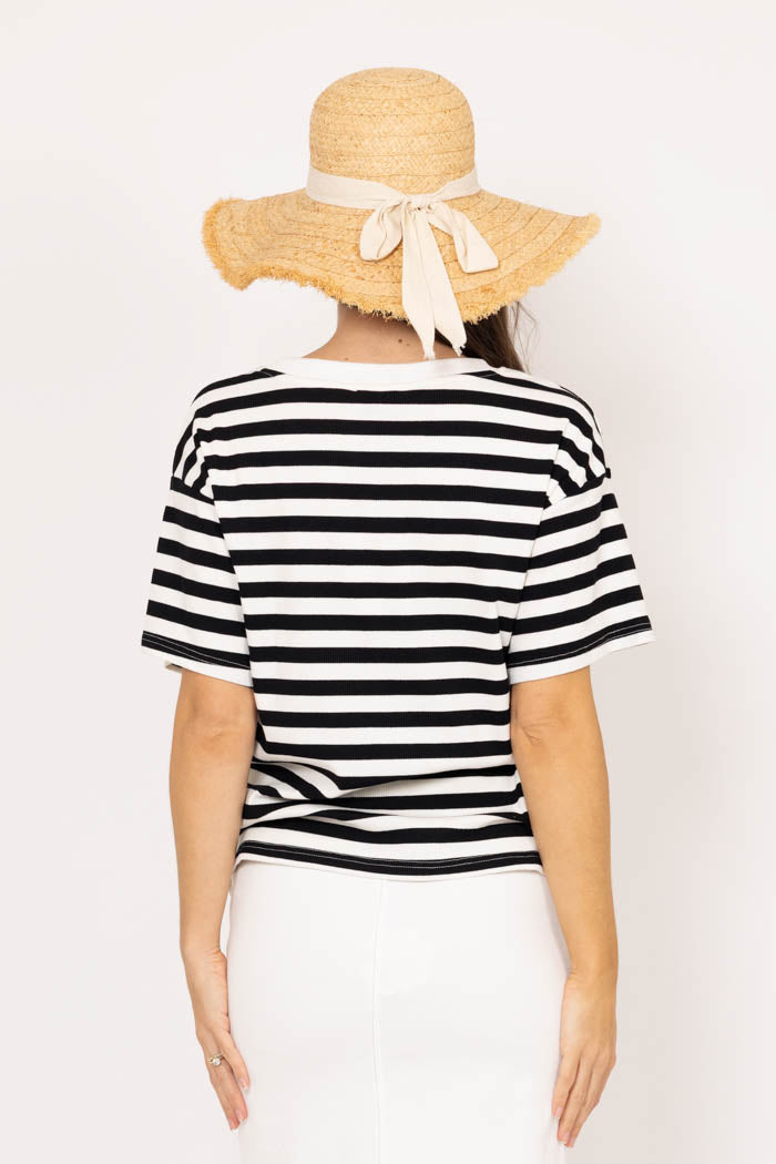 Izzie Stripe Flower T-Shirt Black