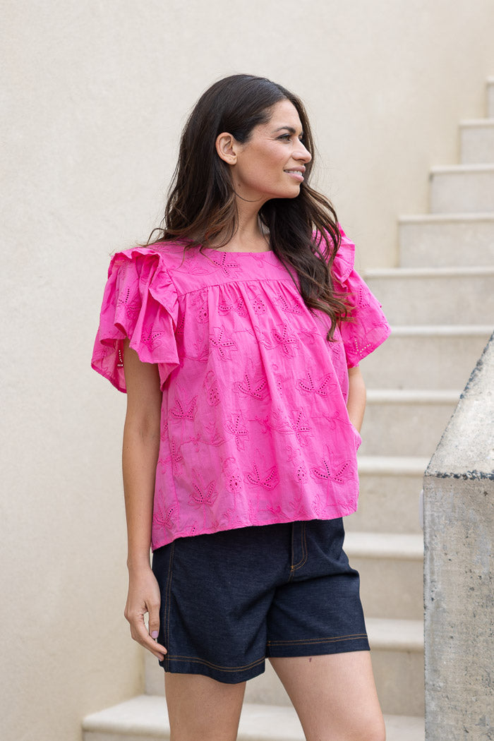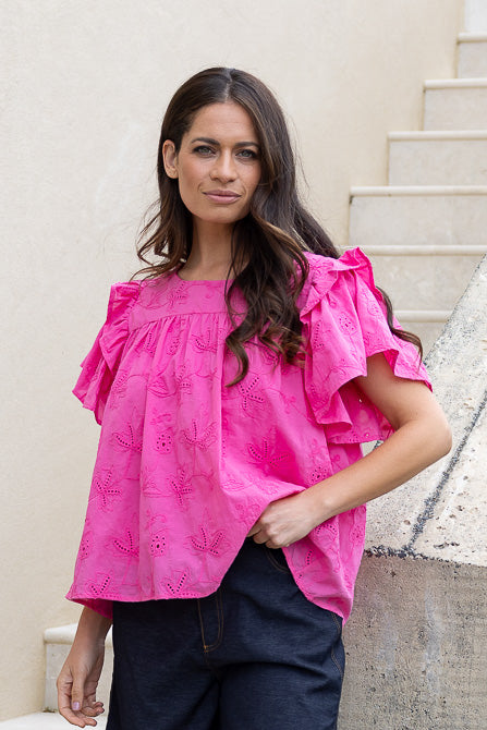 June Embroidered Top Pink