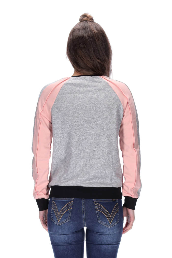Features: Sweater with raglan seams, contrast sleeve panels, pintucks running down the sleeves and a ribbed black neckline, cuff and hem band