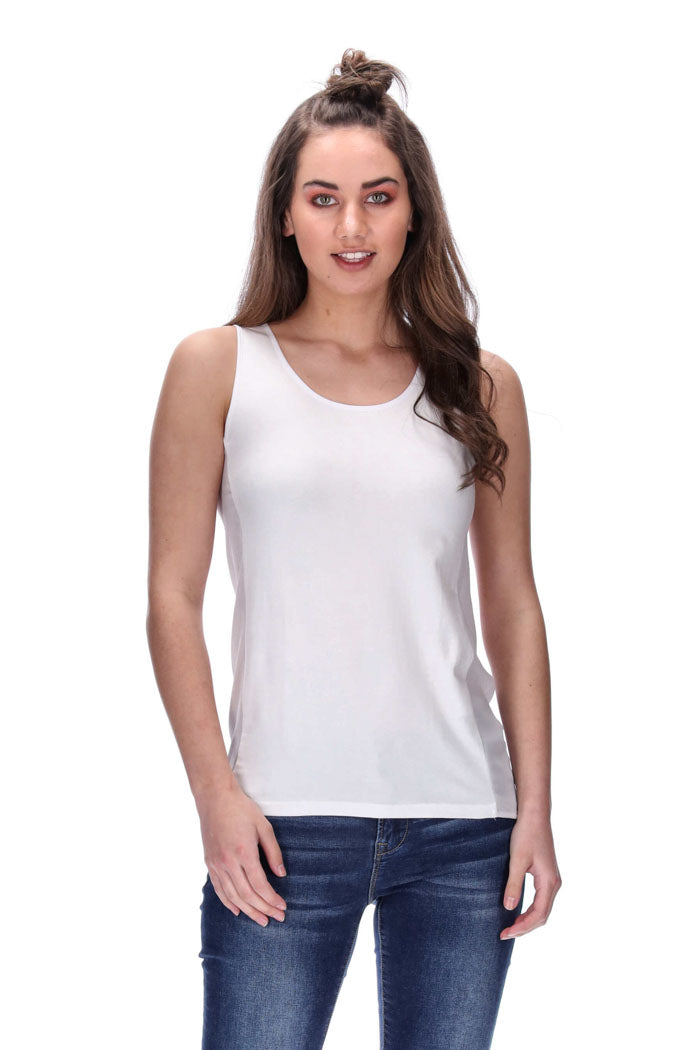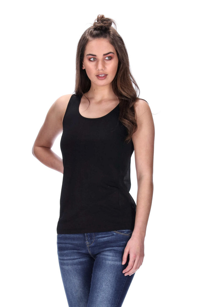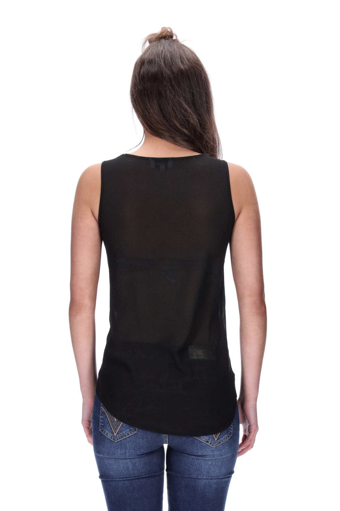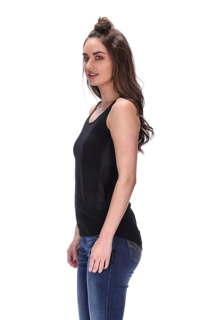 Singlet Features: Contrast chiffon back , curved hem, dipped back