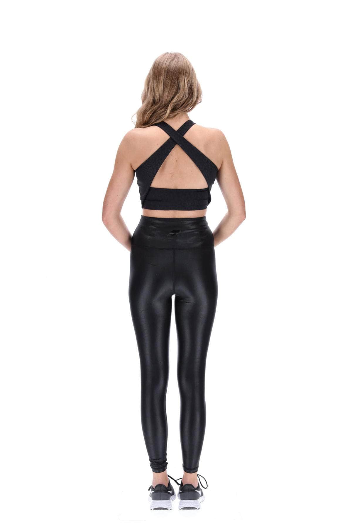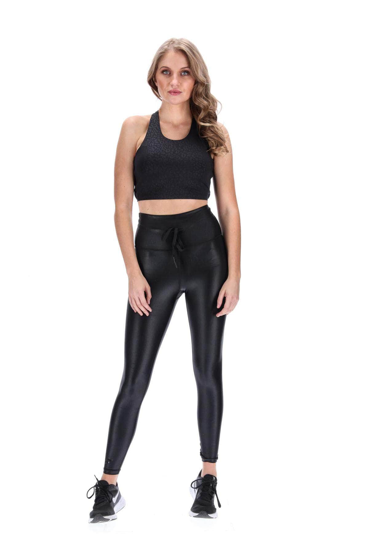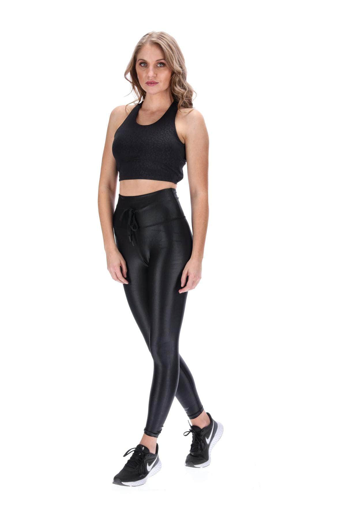 A lovely black sheen high waisted legging, with a front drawstring tie. Back waist phone pocket.