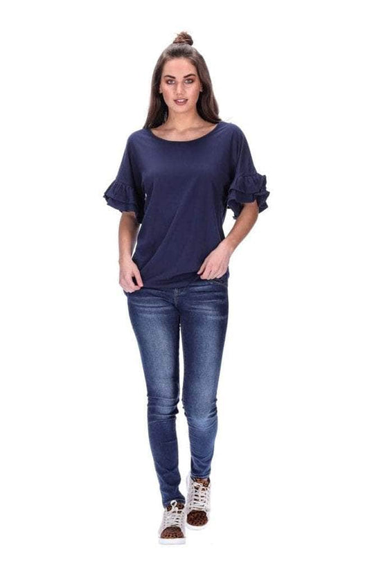 Features: Frill sleeves, dropped shoulder, straight hemline