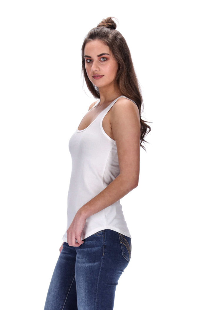 Features: Low scoop with a curved hem and muscle back