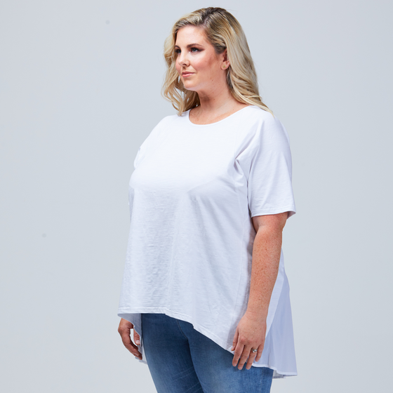 Features: Raglan seam, Textured Fabric, Chiffon Back and Scoop Hem.