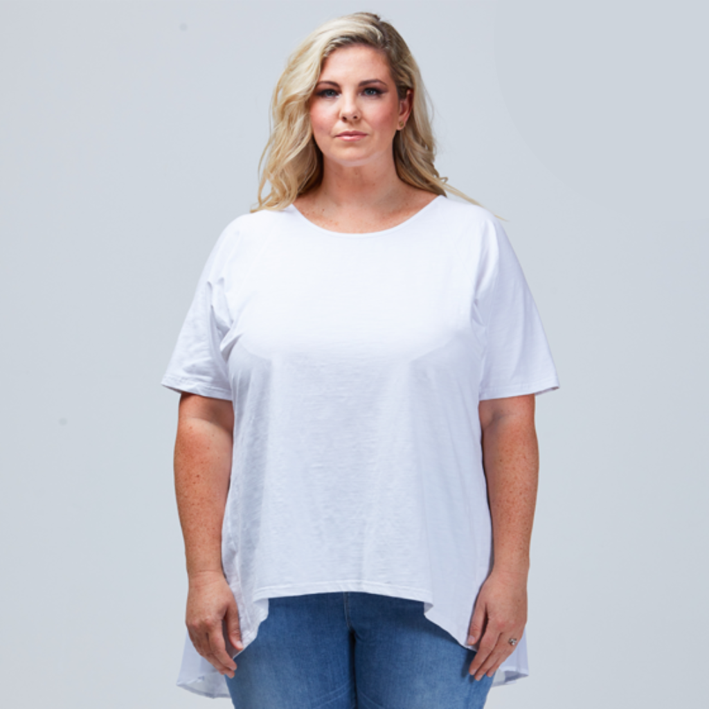A-line shape to the cut of the body so especially good for pear shaped figure types with curvy hips and bottoms.