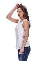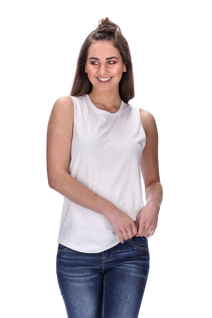 Features: Tank style, raw armhole edges, self binding on neckline
