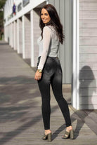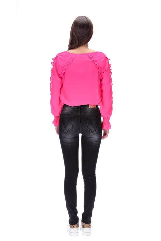Mid-Rise black stretch denim with no rips and a light stonewash across the front and back.