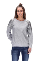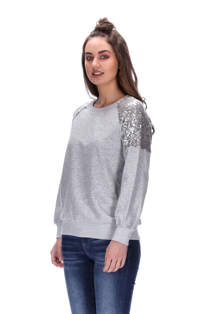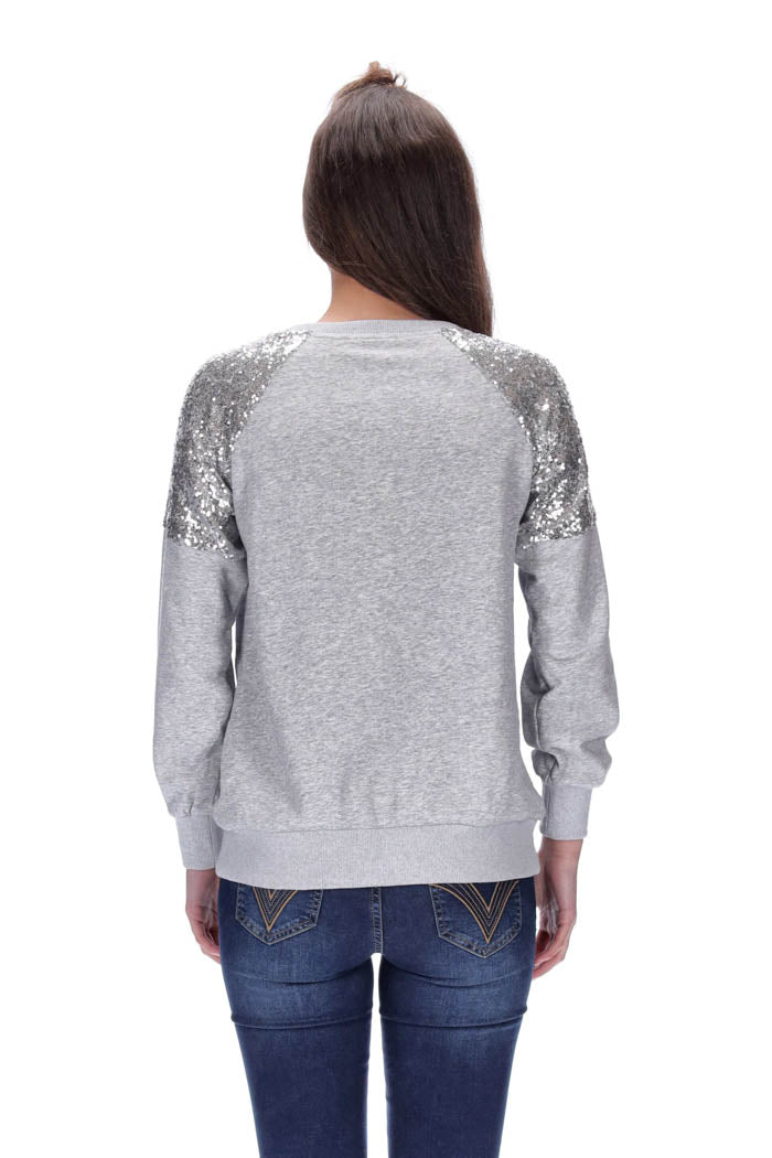 Features: Sweater with raglan seam sleeves, sequin on half of sleeves and chunky ribbing on hems.
