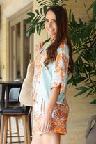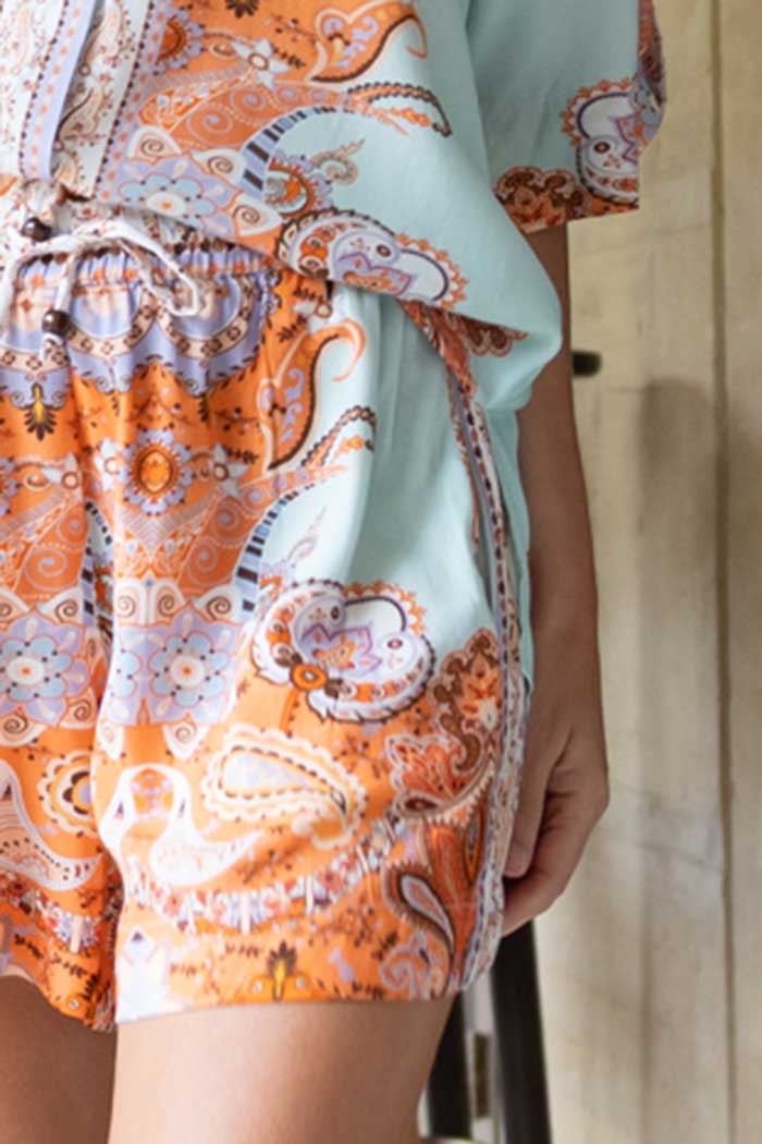 A gorgeous patterned orange and blue short.