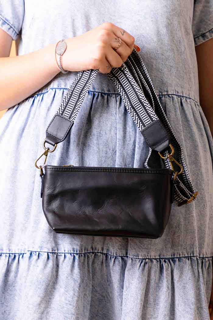 • Long black & white woven shoulder strap