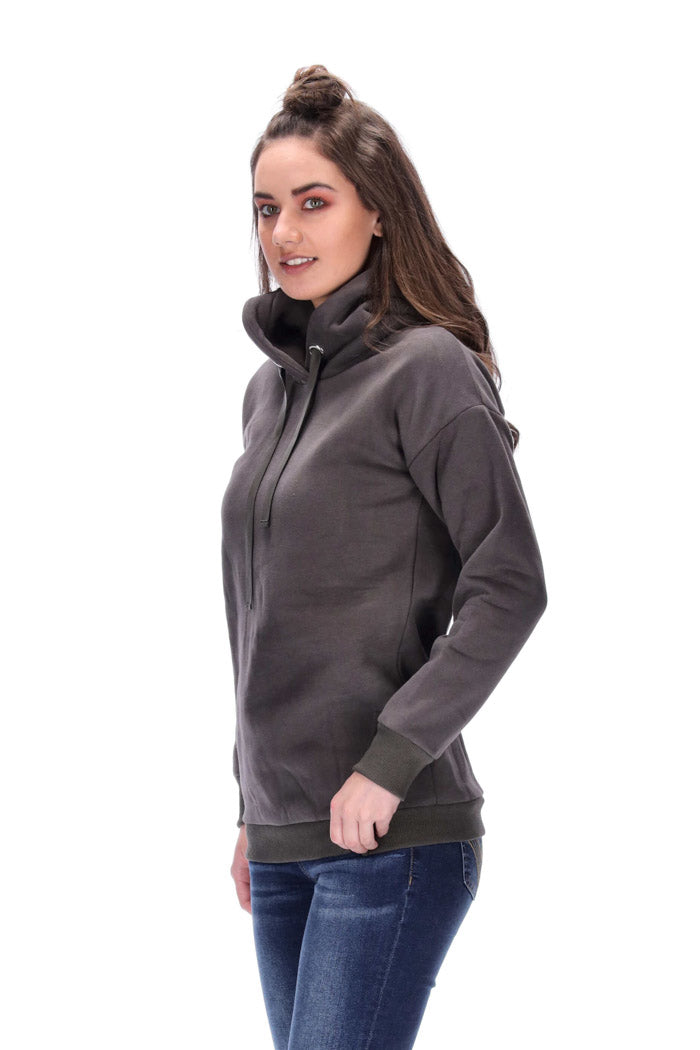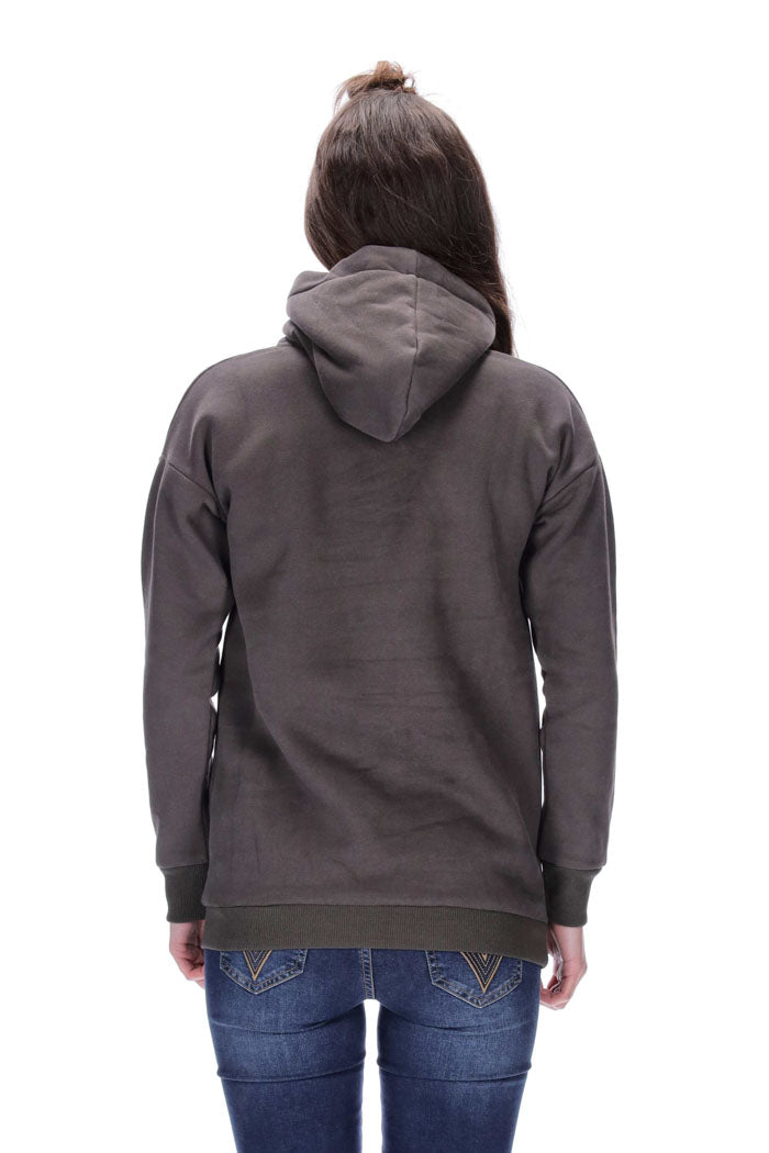 Features: Casual hoodie with a grosgrain hoodie drawstring, ribbing on the sleeves and hem and side zip detail in front.