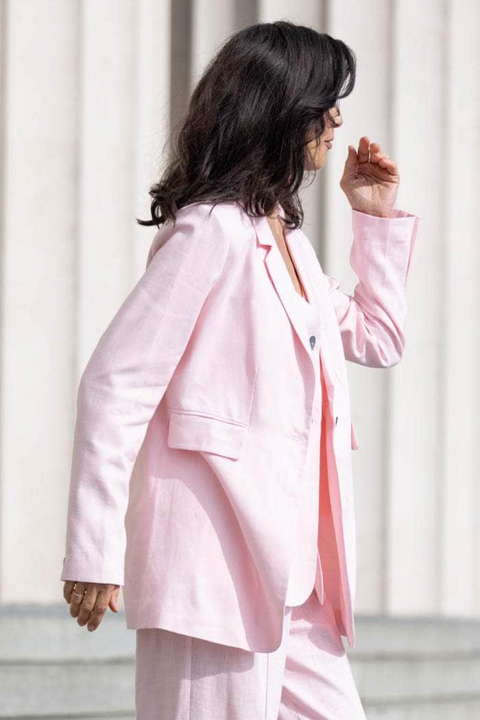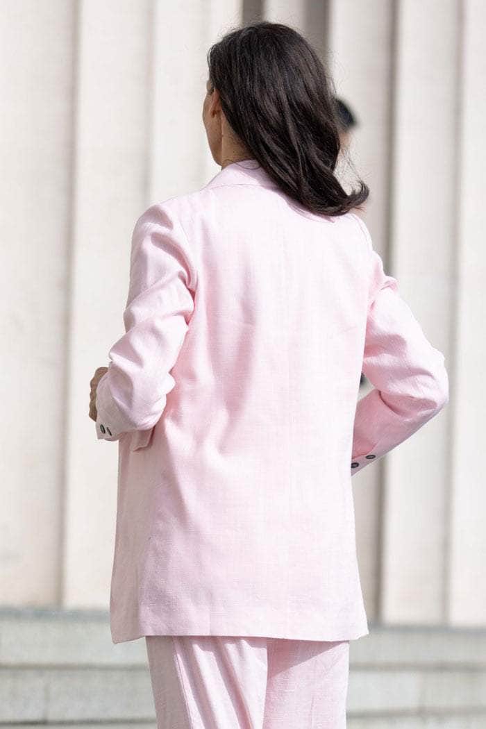 A light pink linen-blend blazer.