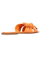 An orange leather knotted strap sandal.