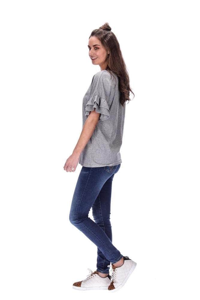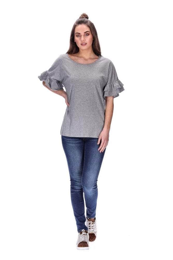 Features: Frill sleeves, dropped shoulder, straight hemline