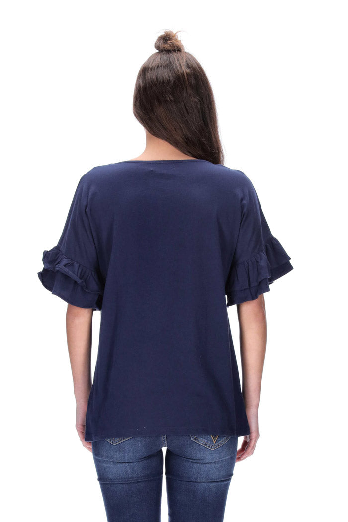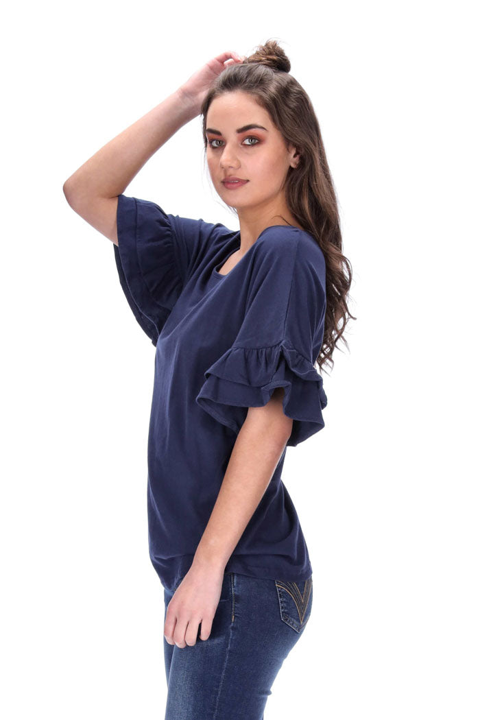Features: Frill sleeves, dropped shoulder, straight hemline