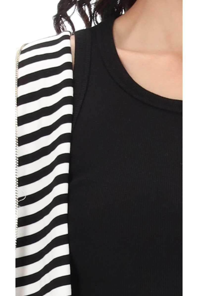 - Black & white stripe print knit jersey