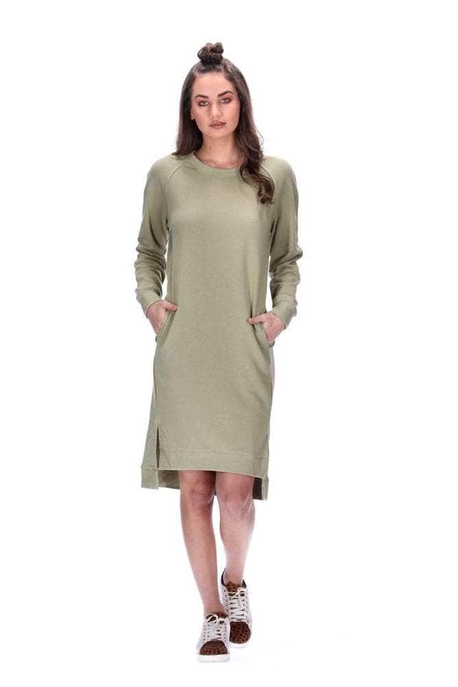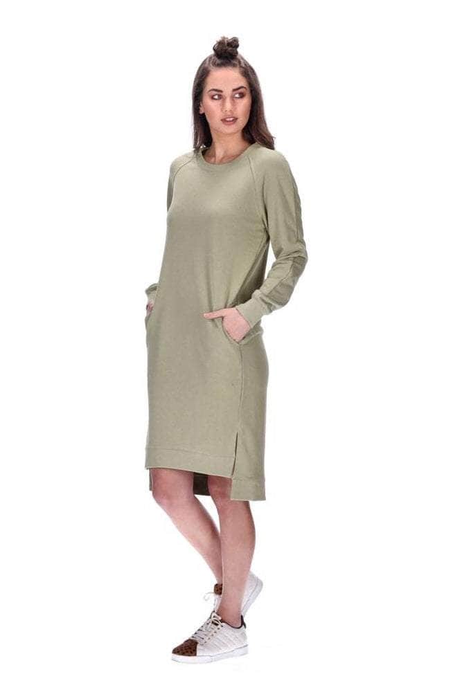 Features: Sweater dress, side pockets, raglan seam, ribbed neckline, cuff and hem band