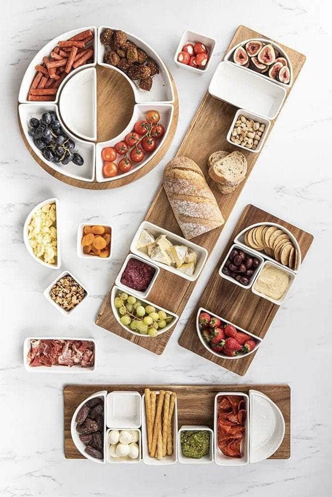 Alto Modular serveware offers a versatile and customised serving experience, complemented by Acacia timber tray that provides a warm contrast. Suitable for any occasion, from family gatherings to elegant dinner parties