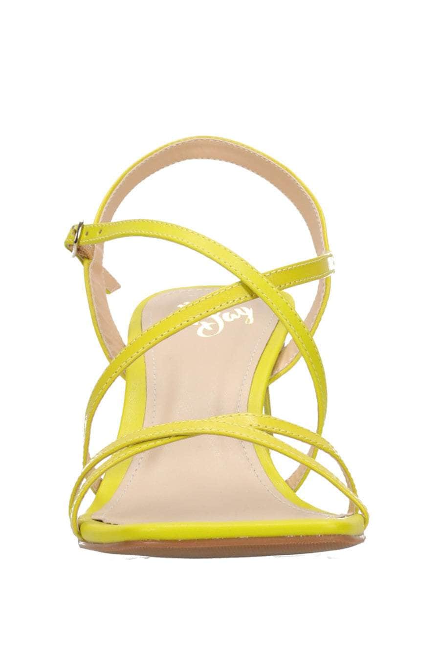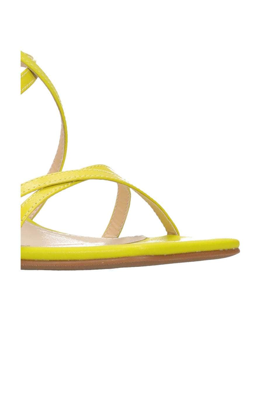 A yellow citrus heel with crossover straps.