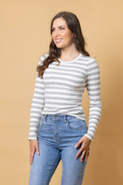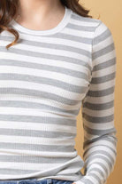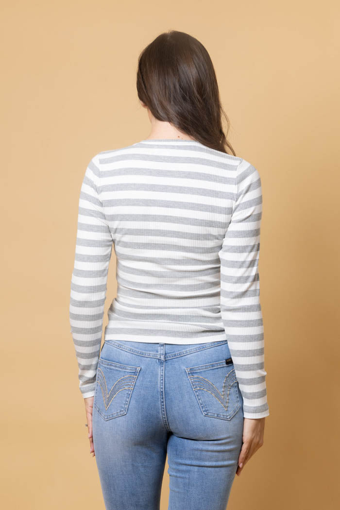 A striped grey & white rib long-sleeve top.