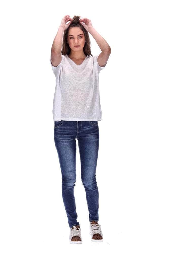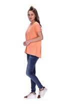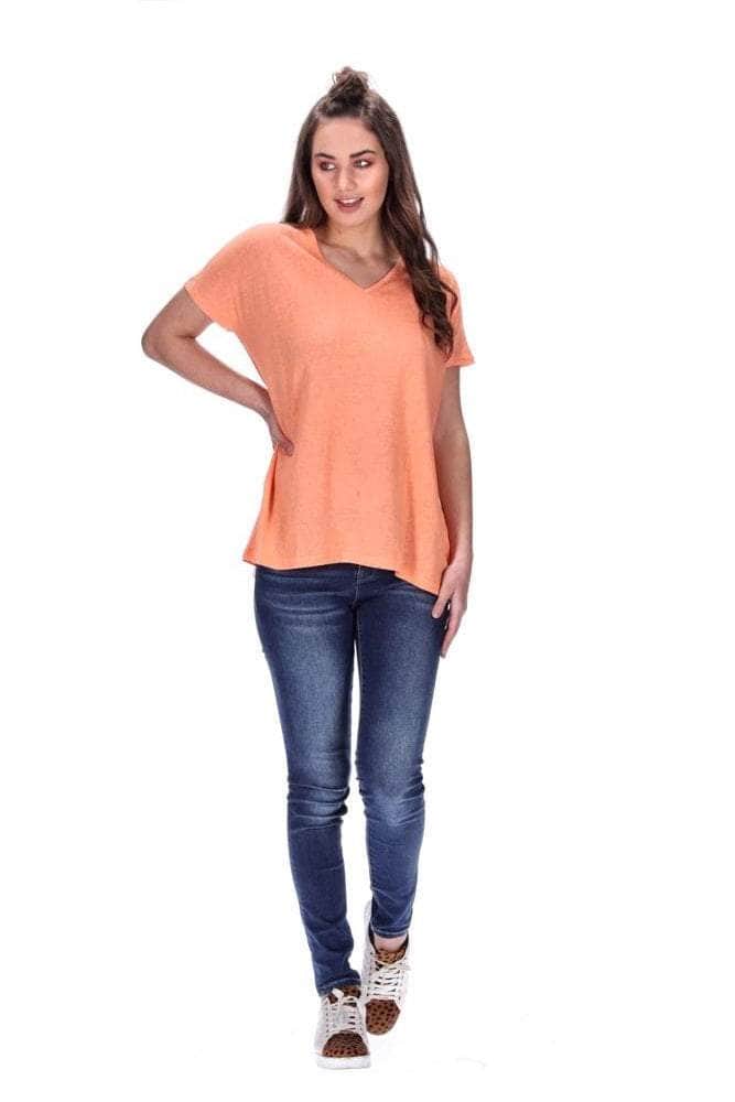 Features: A floaty style tee with a light weight textured fabric, dropped sleeves and a slightly dipped back hem