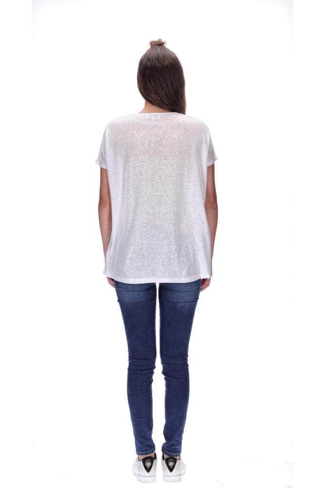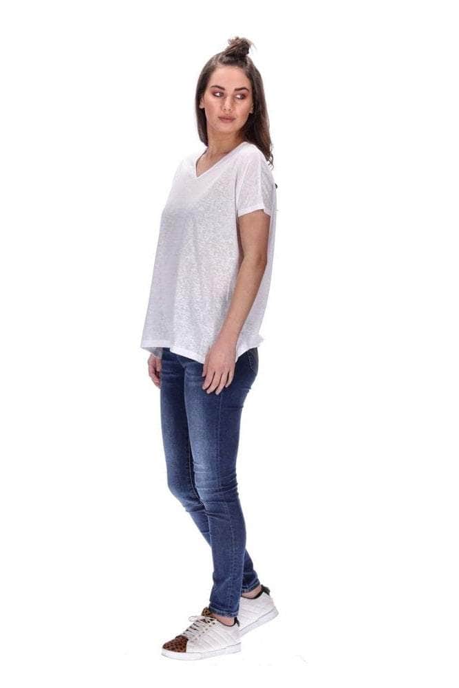 Features: A floaty style tee with a light weight textured fabric, dropped sleeves and a slightly dipped back hem