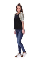 Composition: Main- 95% Cotton, 5% Elastane, Sleeves- 100% Sequin, Sleeve Lining- 97% Polyester, 3% Elastane