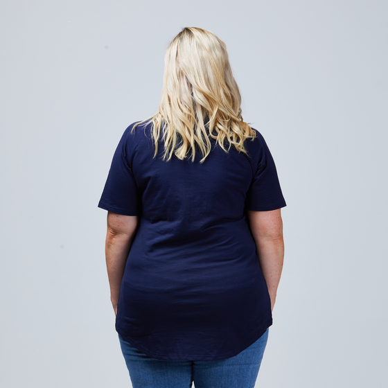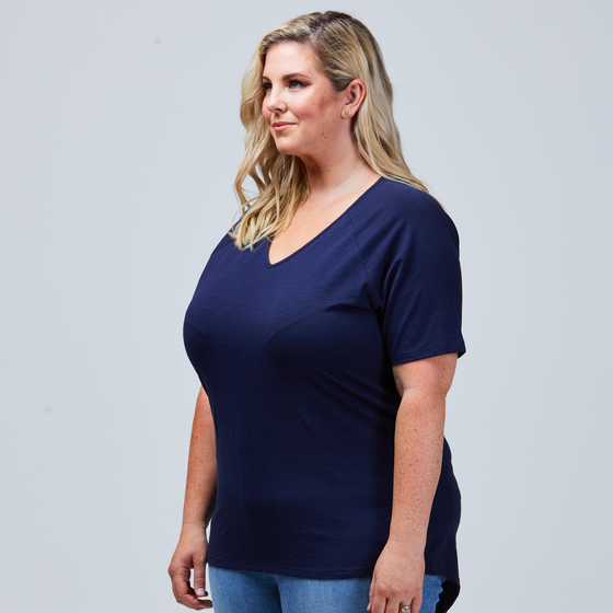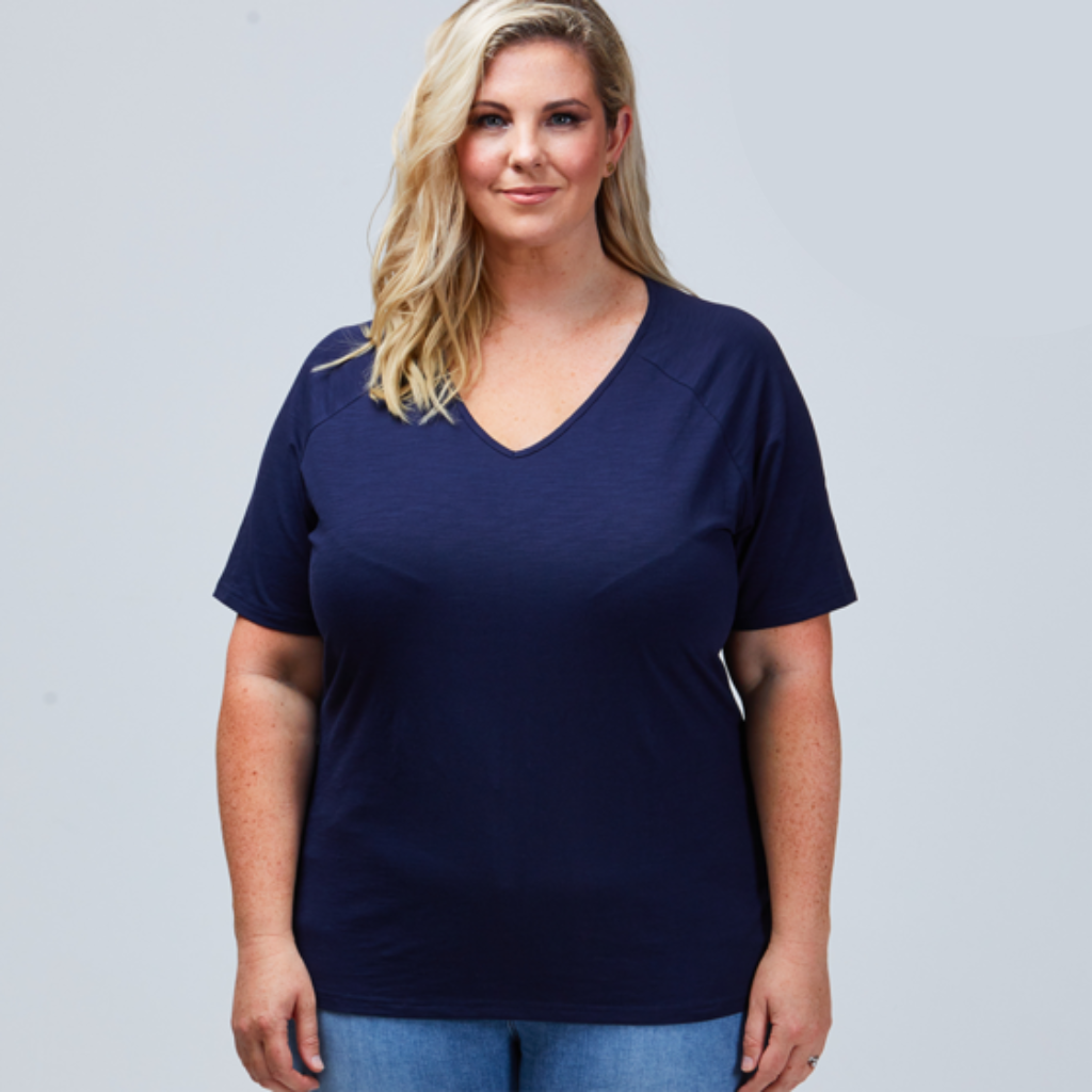 Features: Raglan sleeve, more fitted style with shaped side seams, curved back hem, especially good for hourglass shaped ladies