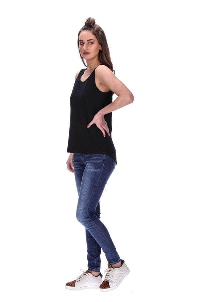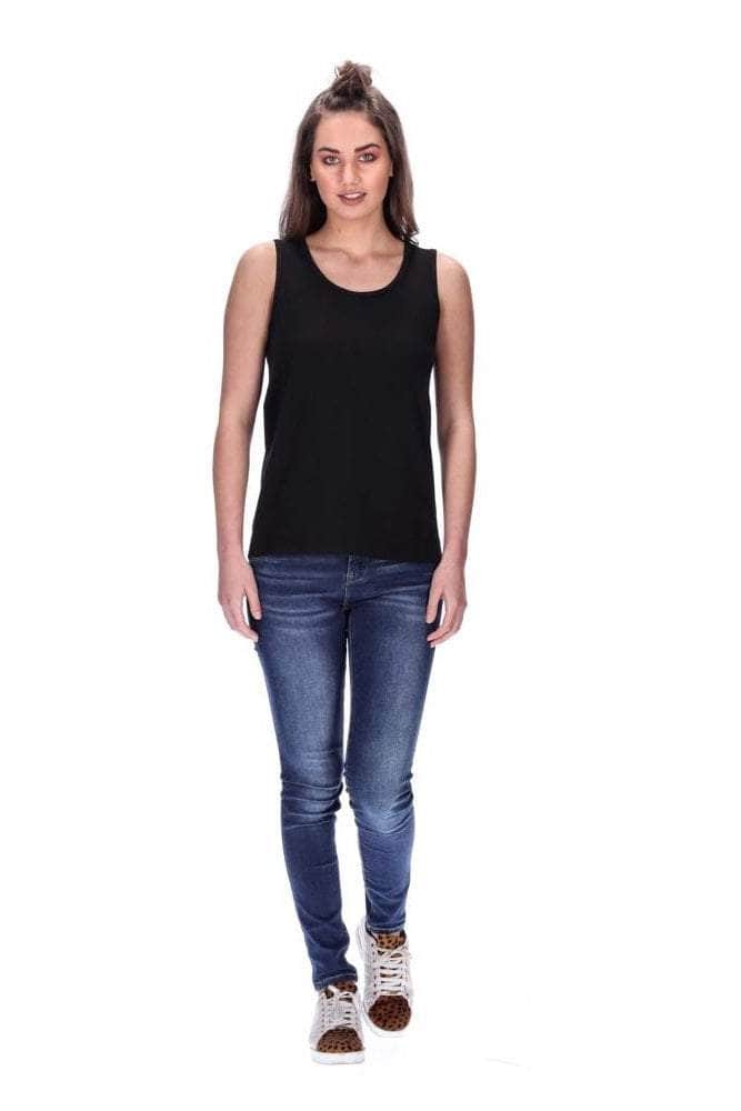 Singlet Features: Princess seam with wider straps and a dipped back hemline
