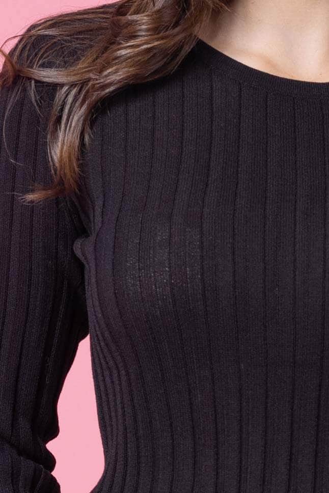 A black long-sleeve top in a wide rib fabric.