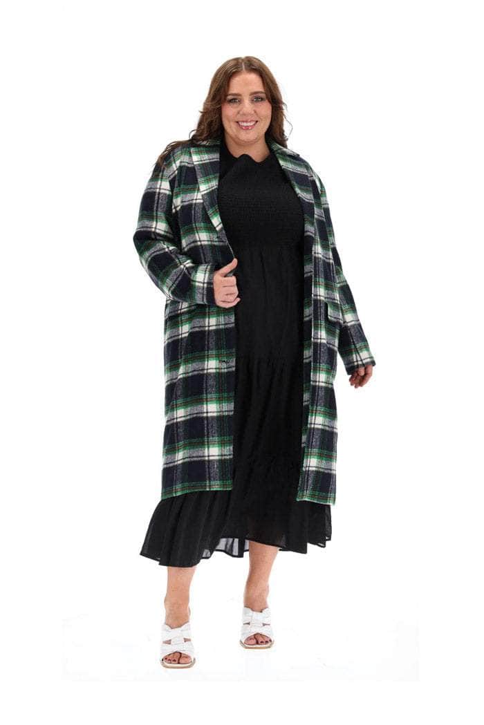 A navy & green tartan print coat.