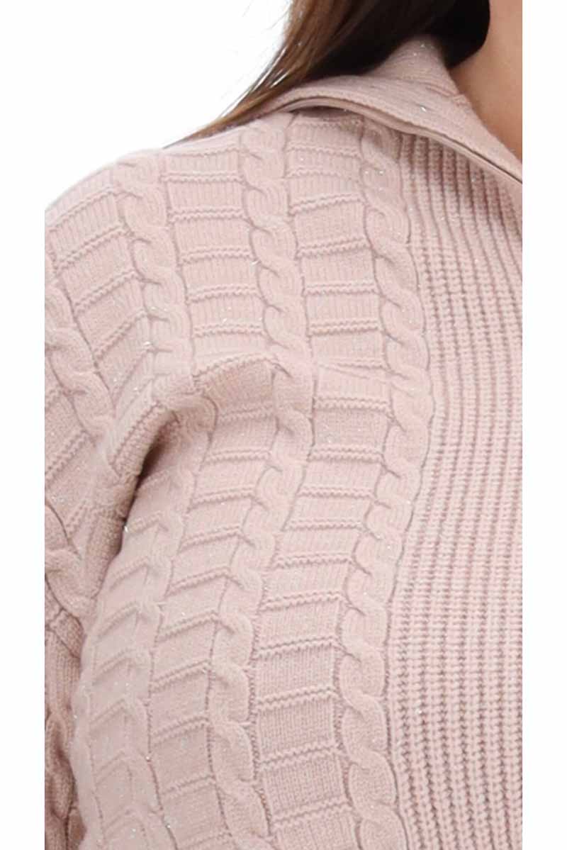 • Beige cable knit with silver thread
