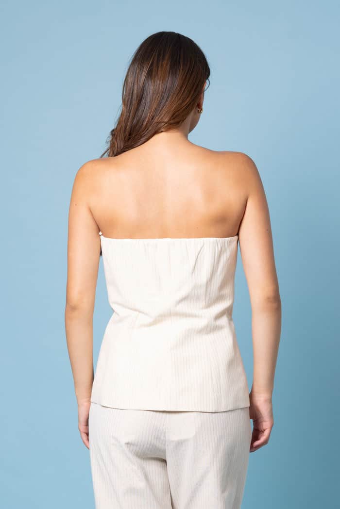 A cream & gold pinstriped bodice top.