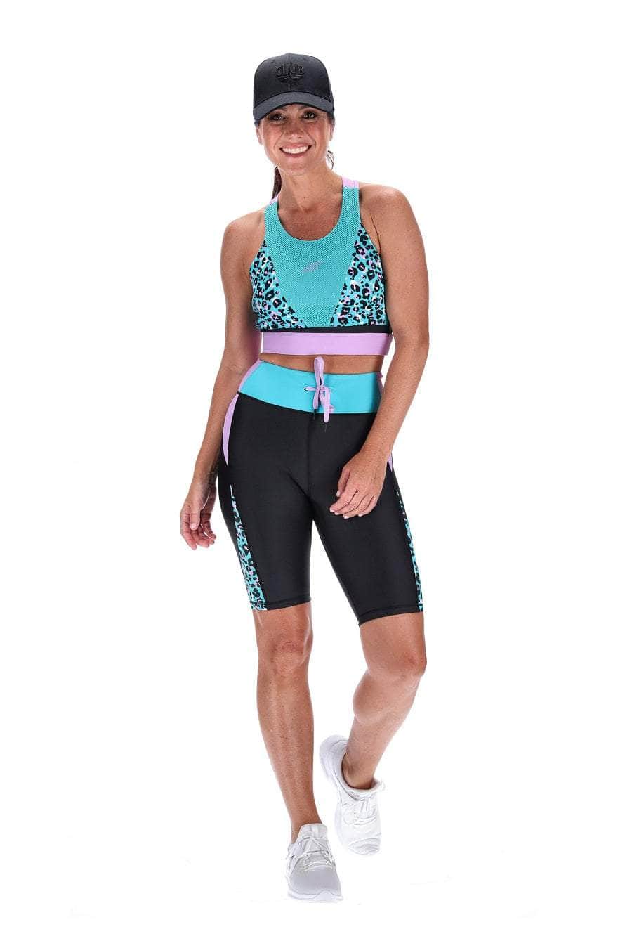 - Ribbed teal leopard print side panels