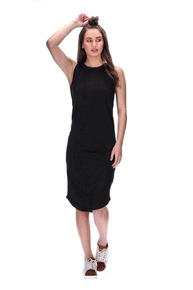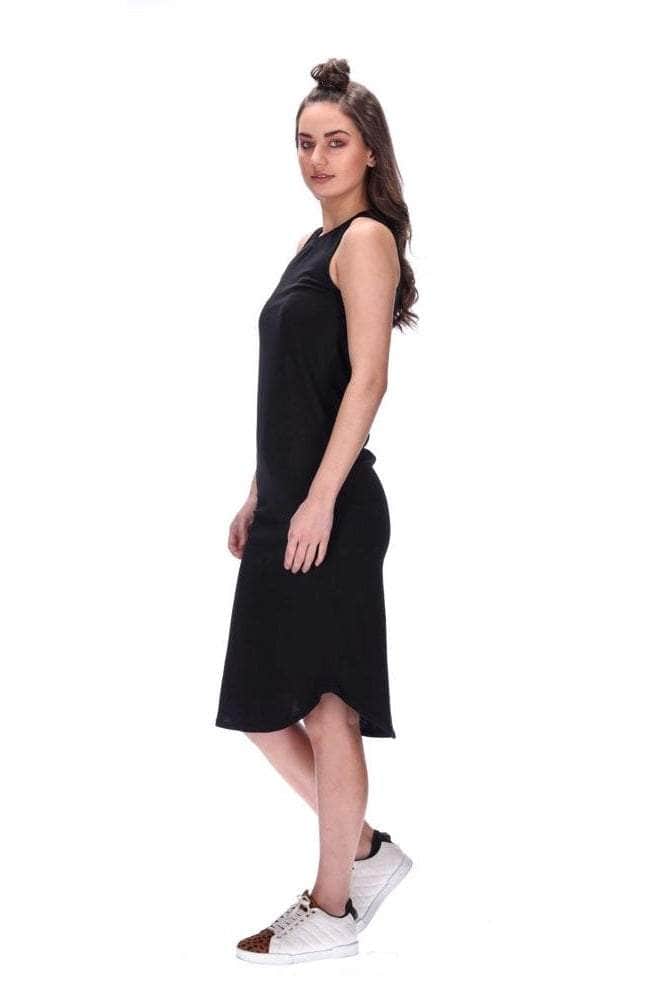 Features: Midi dress with ribbed neckline and a shaped hemline