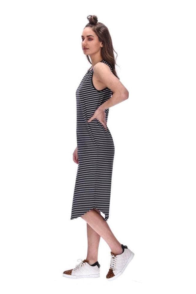 Features: Midi dress with ribbed neckline and a shaped hemline
