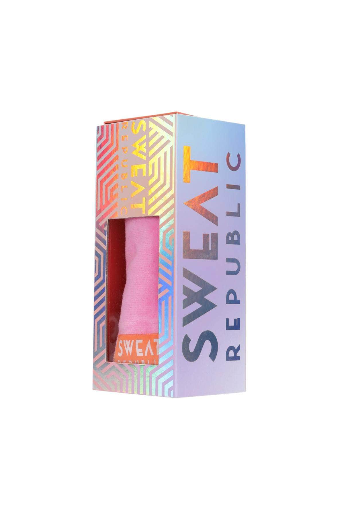 A small SWEAT towel, perfect for the gym. A pink towel with large orange SR logo.