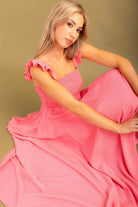 A pink dash print midi dress.