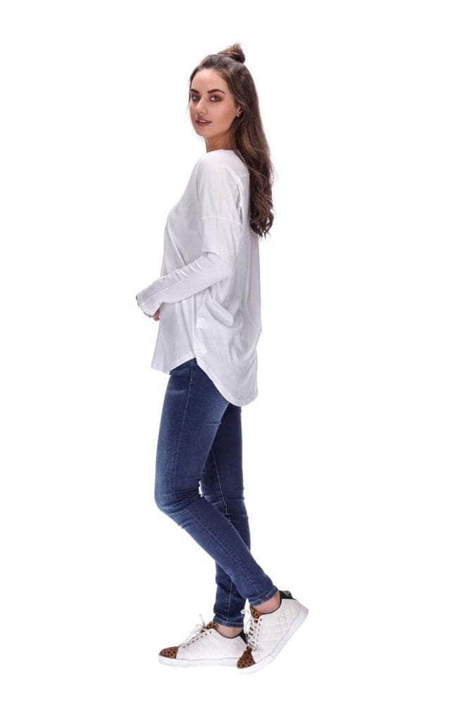 Features: Dropped Shoulder, Back Yoke and C/B seam, Curved Hemline, Dipped Back