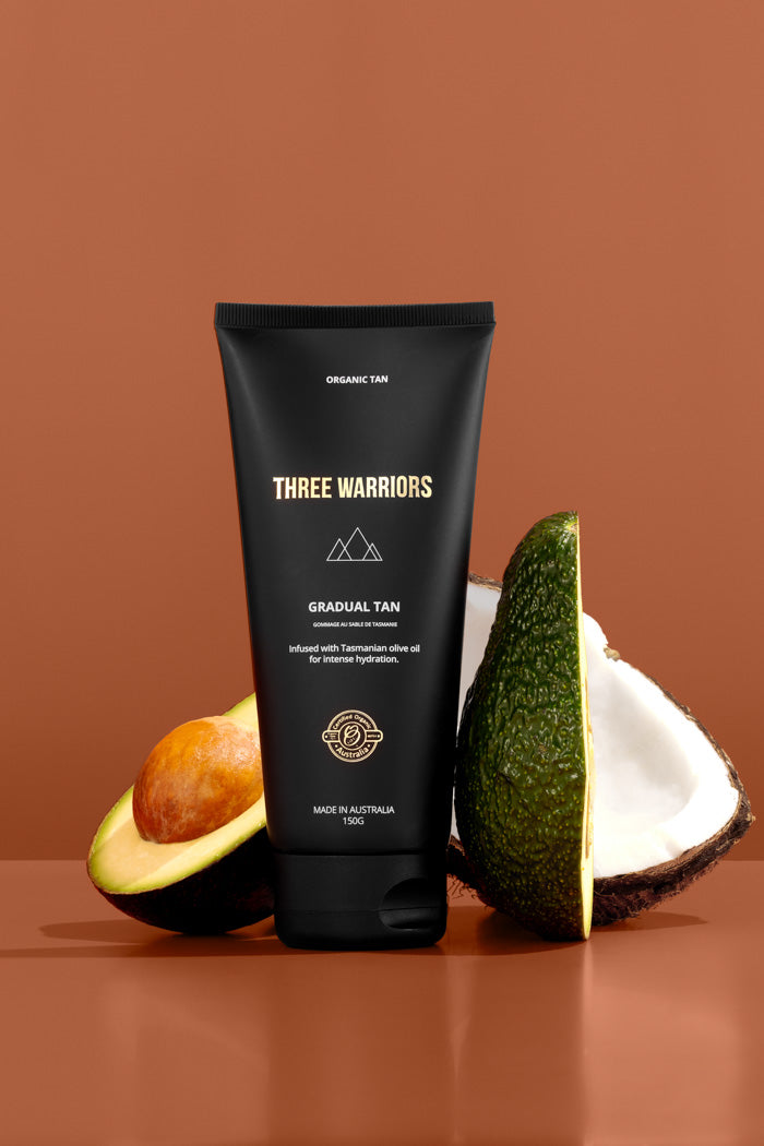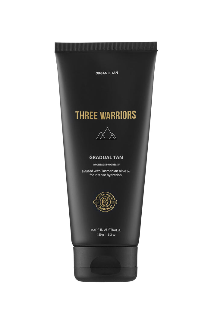 Achieve a flawless, sun-kissed glow with Three Warriors' Gradual Tan, a premium self-tanning moisturiser designed to deliver a natural golden look while nourishing your skin.
