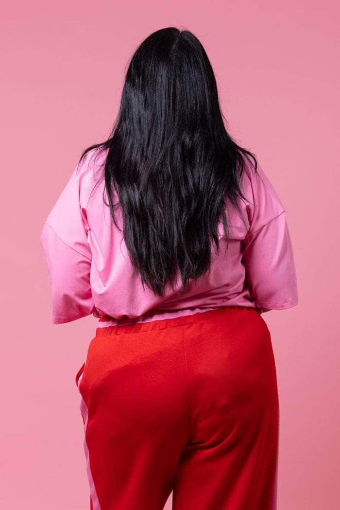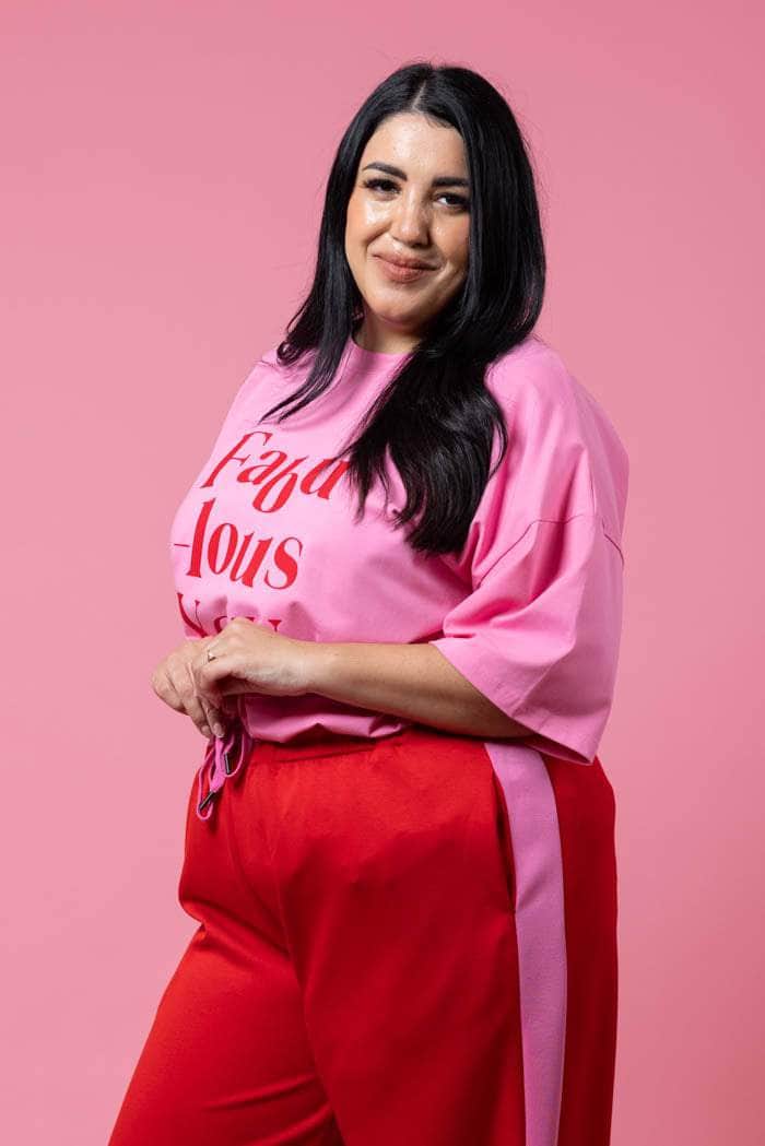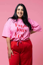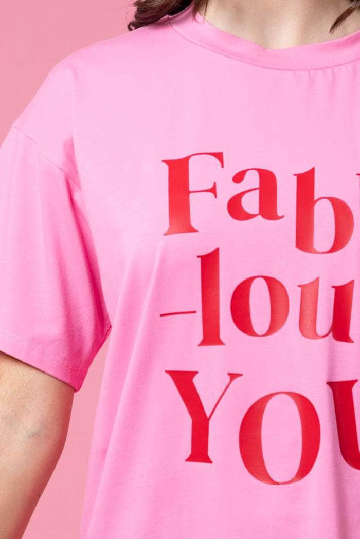 A pink dropped shoulder t-shirt with 'Fabulous You' print.